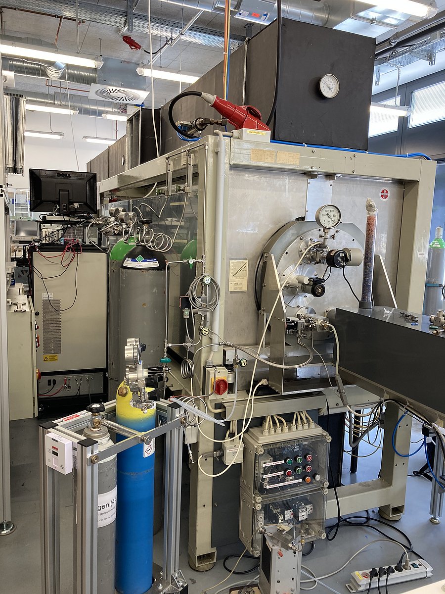 Zur Reinigung steht eine zweistufige Drehschieberpumpe sowie eine Turbopumpe (Pfeiffer) zur Verfügung. Damit kann ein Endruck von 10-4 mbar in der Kammer ereicht werden.